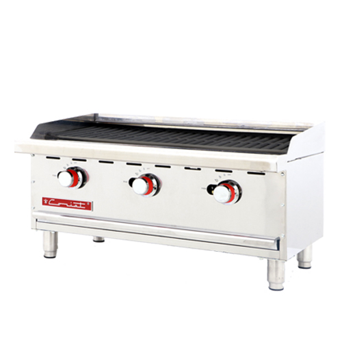 - 3 Parrillas reversibles de hierro fundido, área útil de: frente: 0.290 m, fondo: 0.340 m c/u.