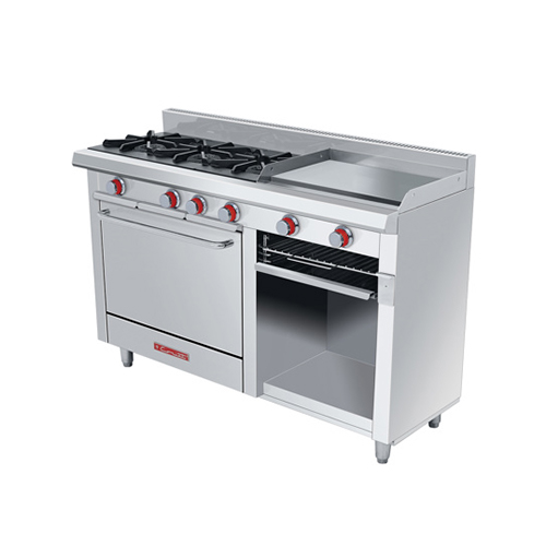 Estufa Coriat® EC-3-H-Grill Piso Petit Plancha • 1 Plancha cold rolled steel 3/4″ de espesor, área útil de: frente: 0.576 m, fondo: 0.344 m. • 1 Gratinador de 0.540 m de frente. • 2 Quemadores en «U» A.Inox.