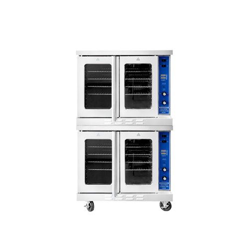 Horno de convección a gas de 2 secciones, costado y charolas de acero inoxidante 430.